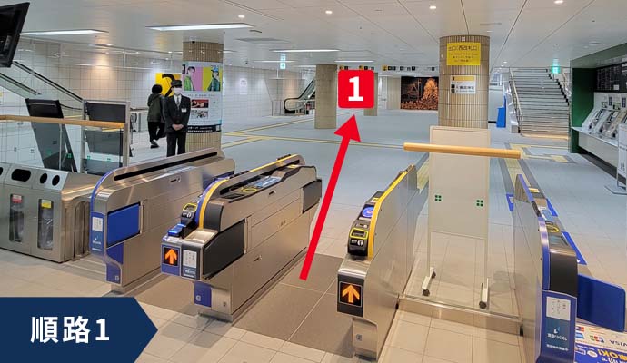 ![]() 西改札を出て左奥へ進むと、1番出口のエレベーターがございます。 ![]() |