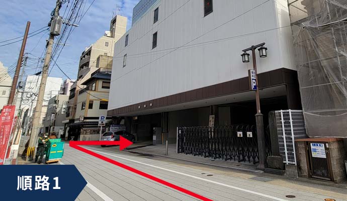 ![]() 櫛田神社の駐車場は表参道沿いにございます。 |